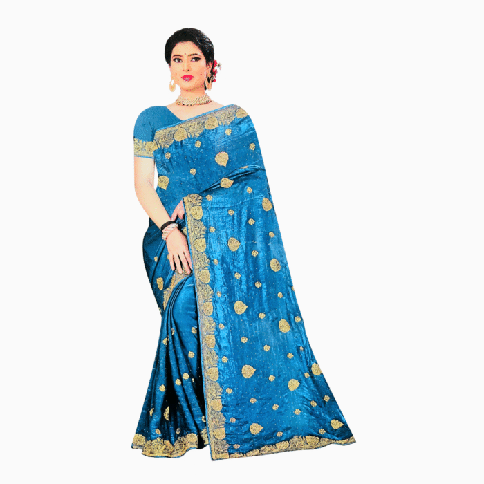 Jimmi Chu Designer Bollywood Silk Saree – Blue