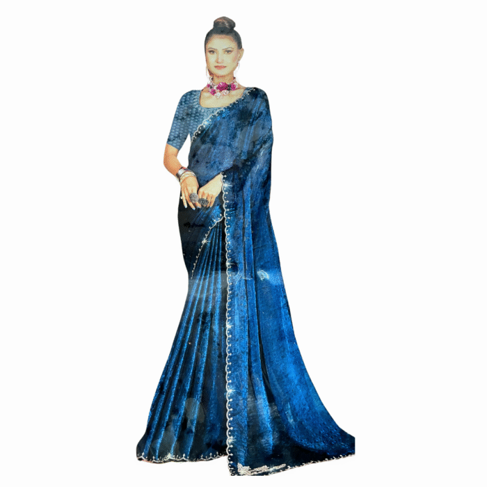 Jimmi Chu Blue Embellished Bollywood Silk Saree – Designer Elegance for Every Occasion