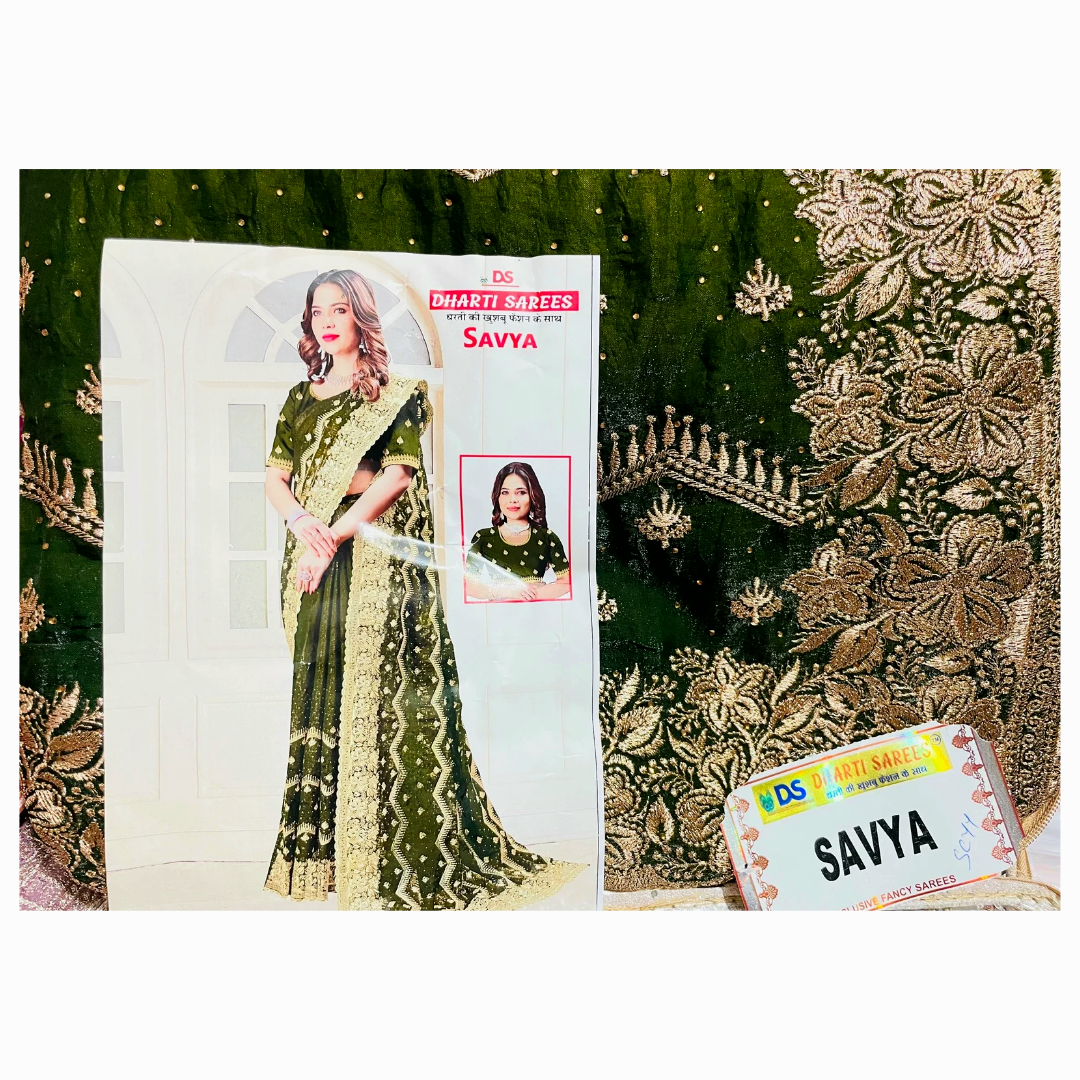 Jimmi Chu Olive Embellished Bollywood Silk Saree – Designer Elegance for Every Occasion