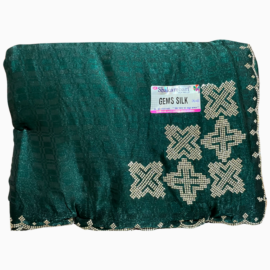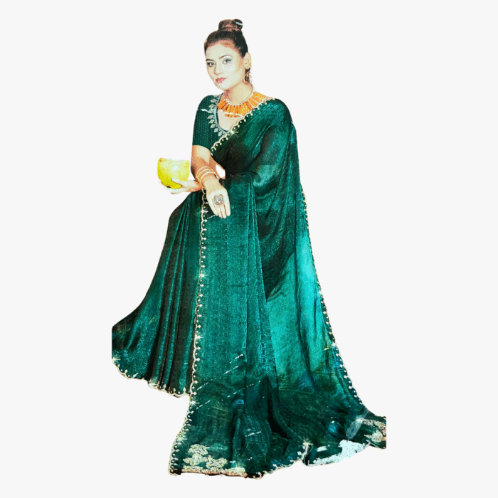Jimmi Chu Green Embellished Bollywood Silk Saree – Designer Elegance for Every Occasion