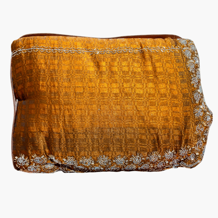 Jimmi Chu Orange Embellished Bollywood Silk Saree – Designer Elegance for Every Occasion