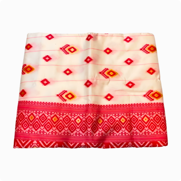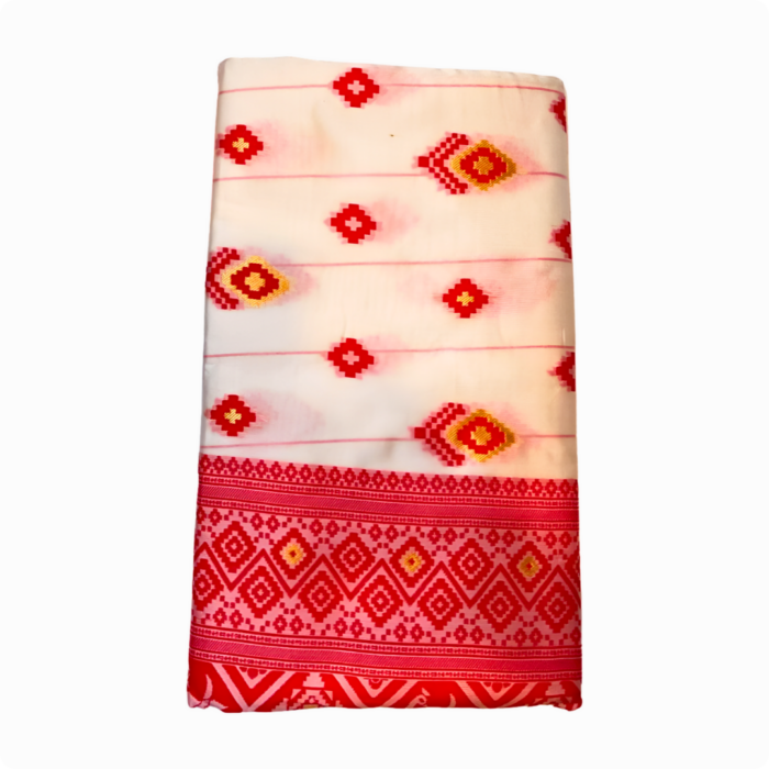 Introducing the exquisite “White Silk Printed Laal Paar Durga Puja Saree,” a stunning blend of tradition and elegance. Crafted from luxurious white silk, this saree features intricate prints that celebrate the vibrant spirit of Durga Puja. The striking red border (Laal Paar) adds a bold contrast, making it the perfect choice for festive occasions. Stand out in the crowd and honour tradition with this unique saree that offers both beauty and cultural significance. Key features include: –