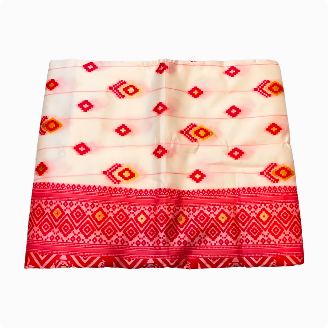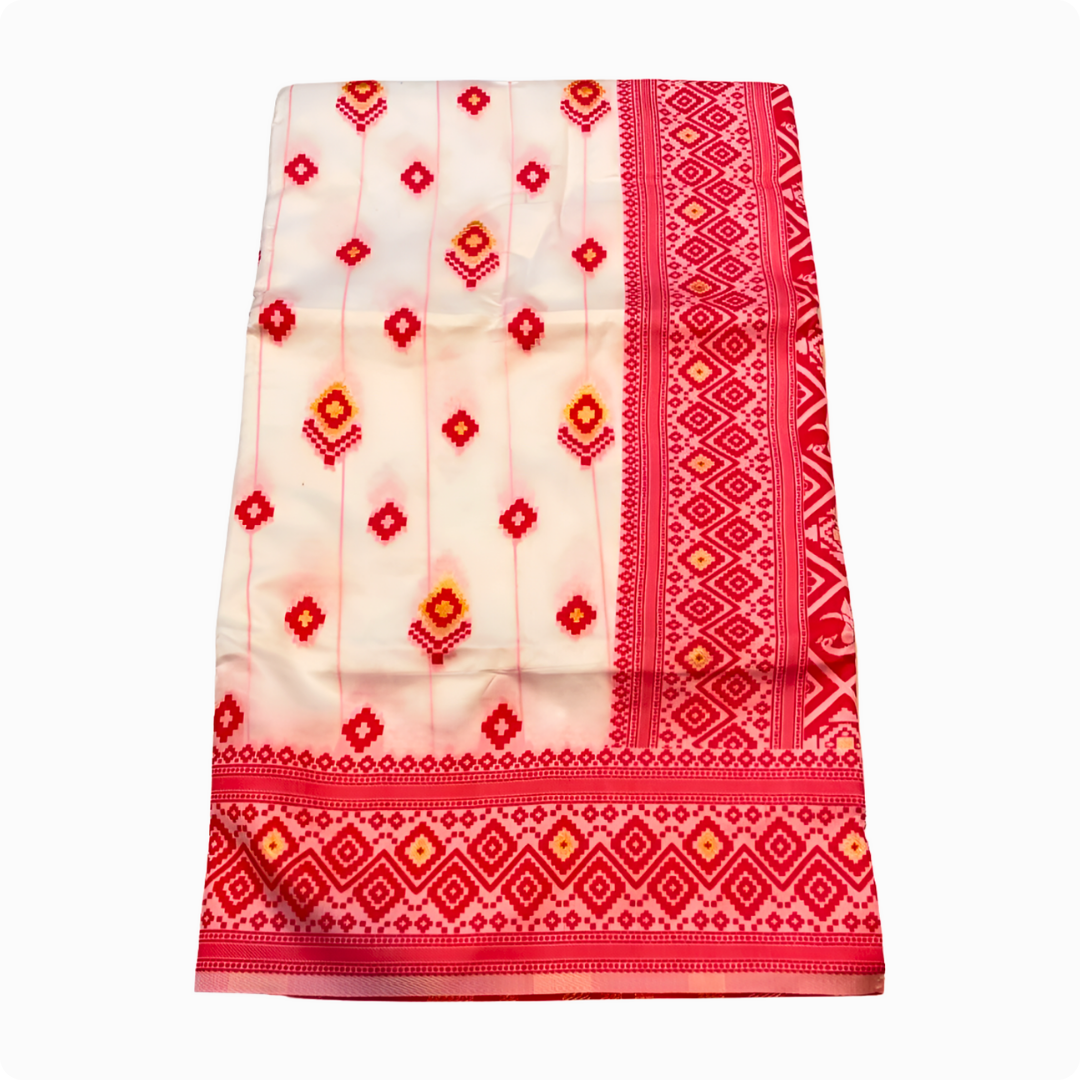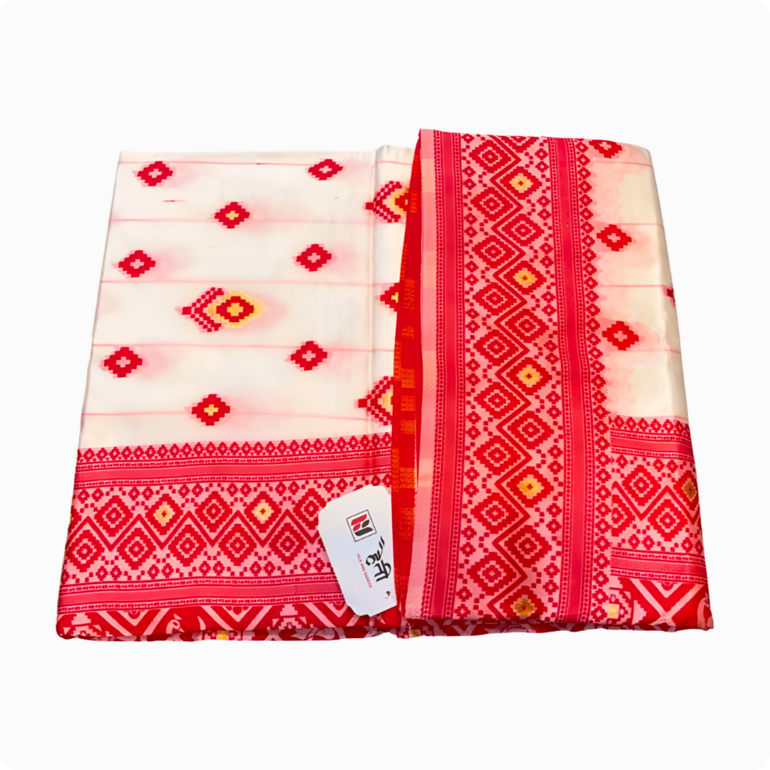 White Silk Printed Durga Puja Saree – Traditional Ethnic Wear for Navami Celebrations